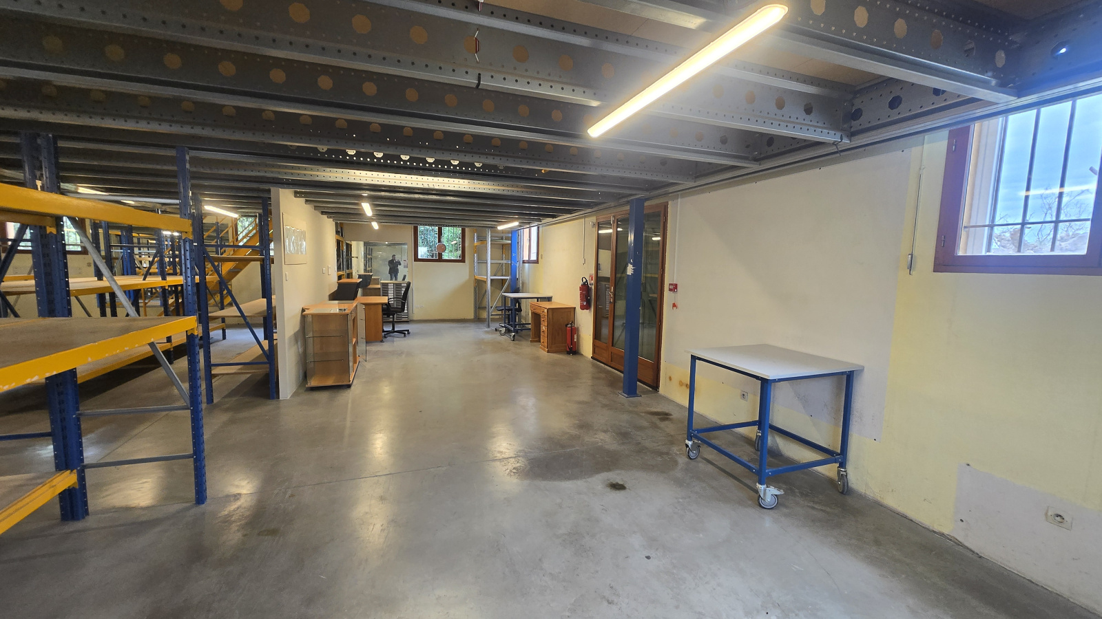 Elle est composée de 260 m² de bureaux, répartis en rez-de-chaussée et en R+1, d’un espace entrepôt isolé de 320 m², destiné à de l’atelier ou du stockage, et d’une mezzanine de 150 m².