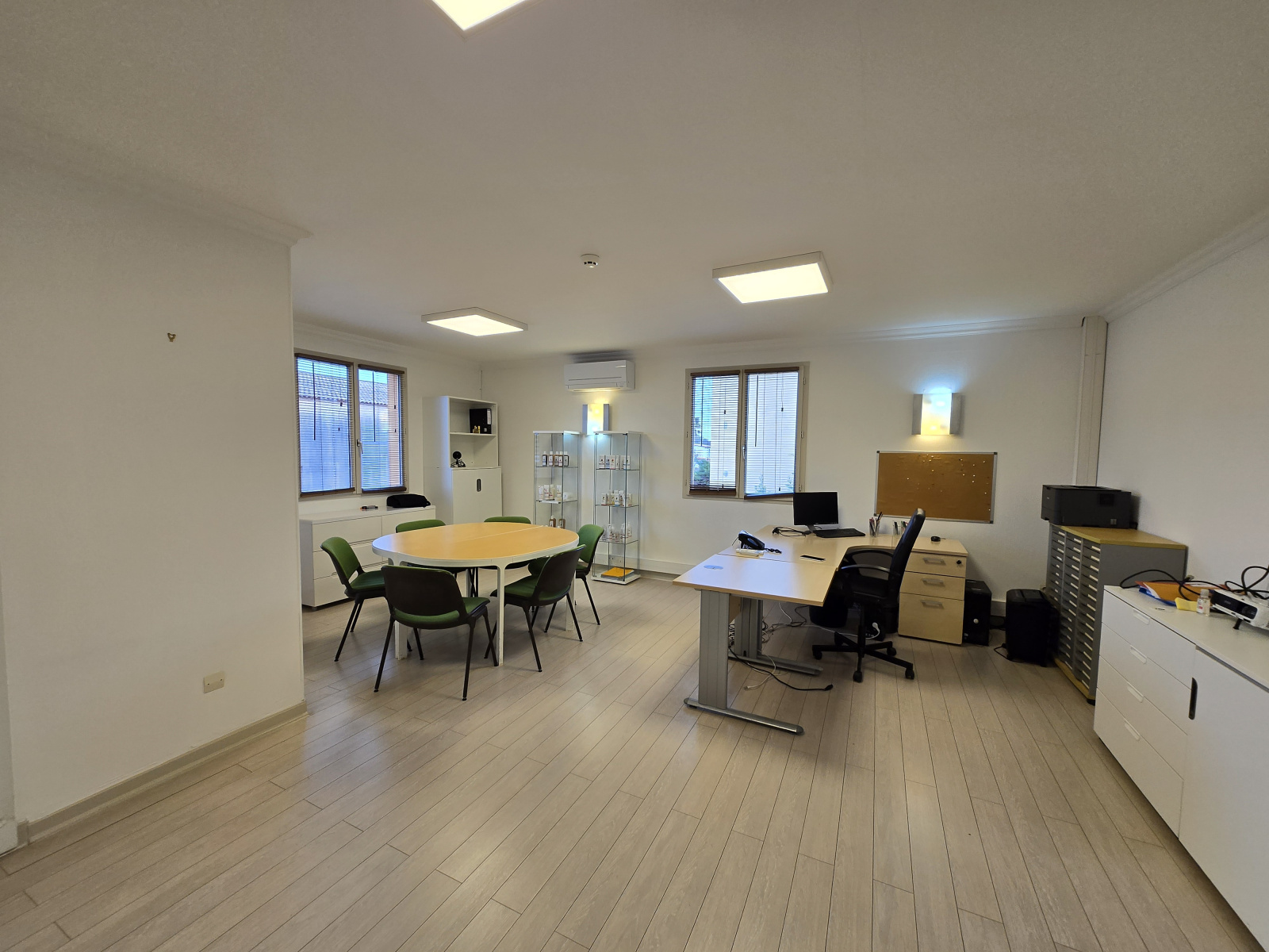 La partie bureau est équipée d’un système de climatisation réversible et d’un éclairage Led.