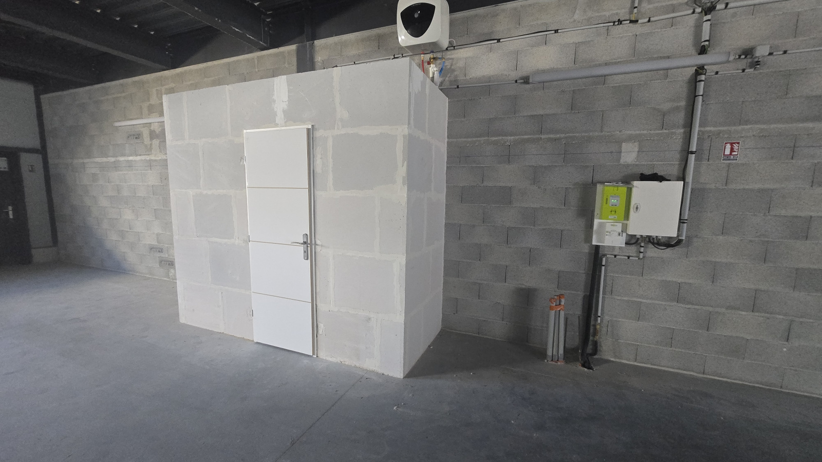 Accès à l'intérieur du local via une porte sectionnelle et une porte de service.