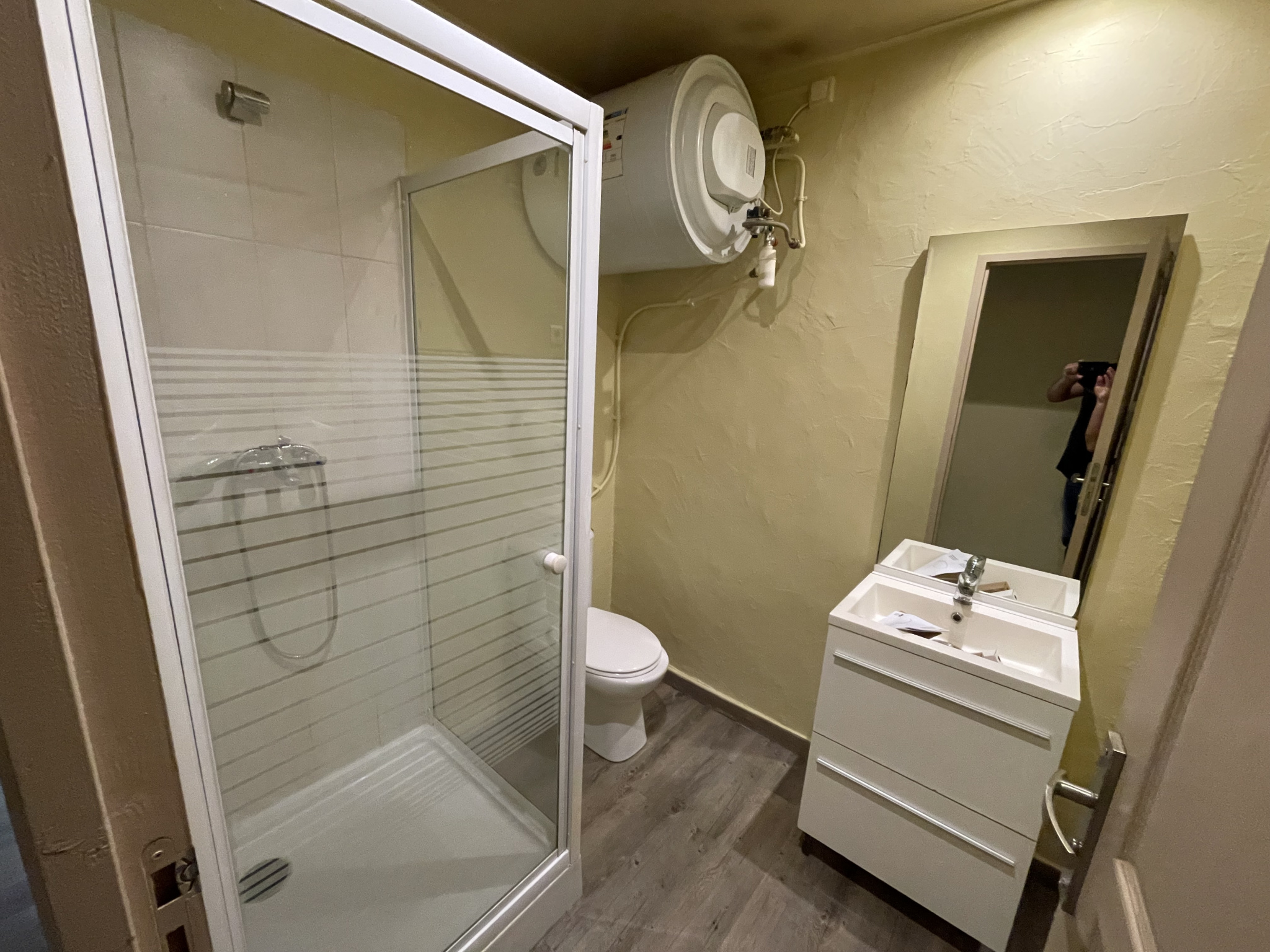 Il est composé d'un séjour avec espace cuisine, une chambre, une salle d'eau avec Wc, le tout complété par une cour extérieur privatif (arrière-cour située au calme) ainsi qu'une cave