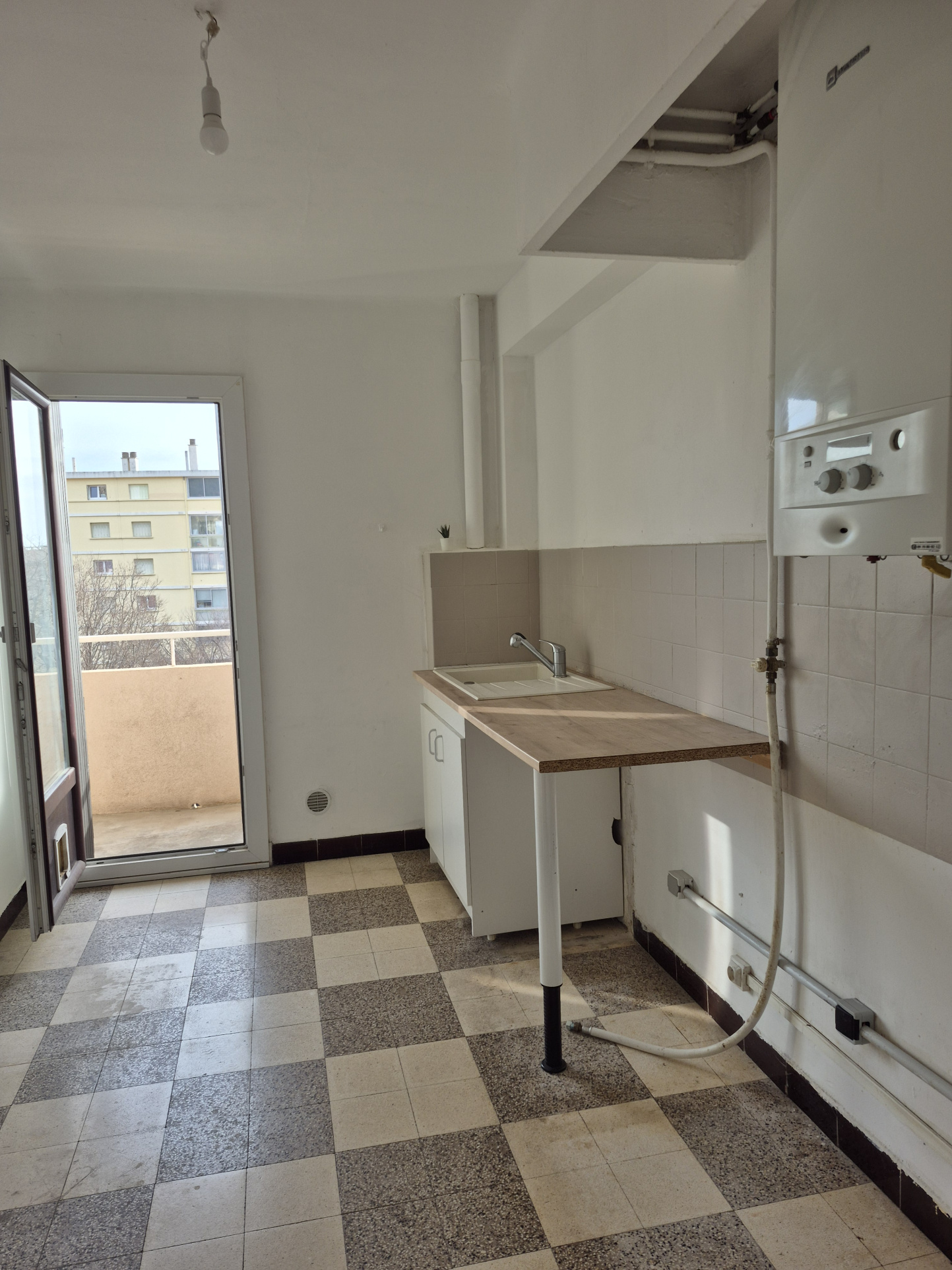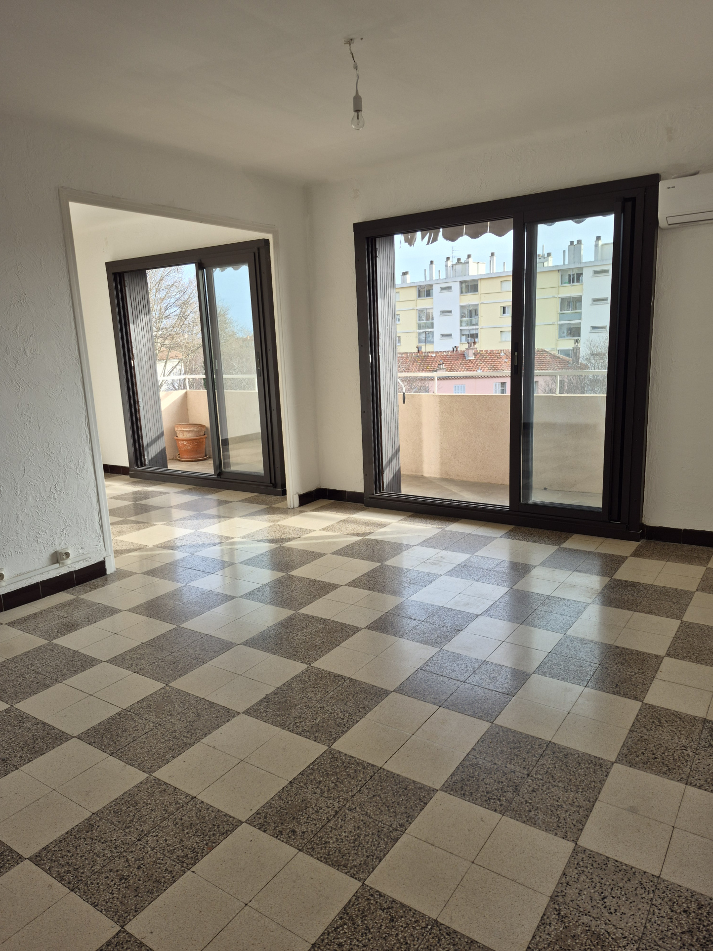 Il se compose d’une entrée, d’une pièce principale donnant accès sur un balcon, d'une cuisine aménagée, de deux chambres dont une avec un placard, d'une salle d'eau et d'un WC indépendant.