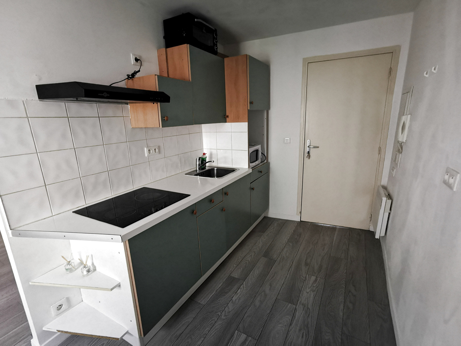 Celui-ci est composé d'une cuisine ouverte sur un séjour/chambre, une salle d'eau avec WC.