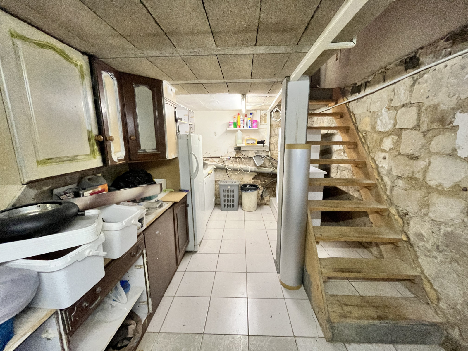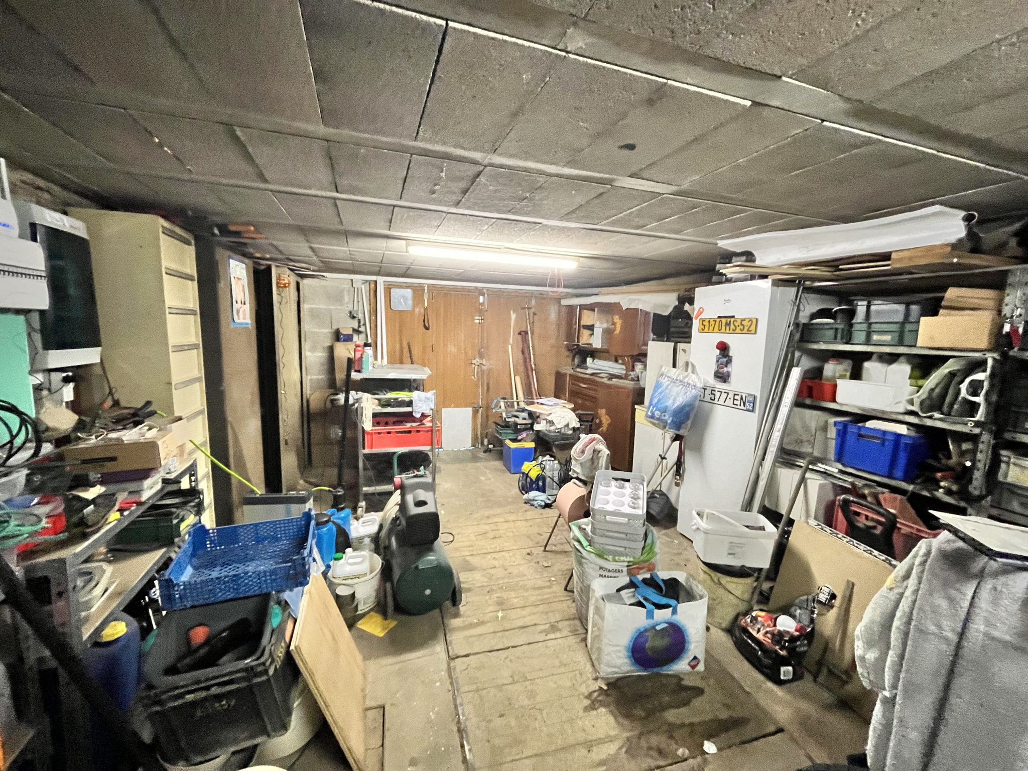 Sous-sol total (demi-enterré) : atelier, buanderie, zone de stockage + puits fonctionnel.