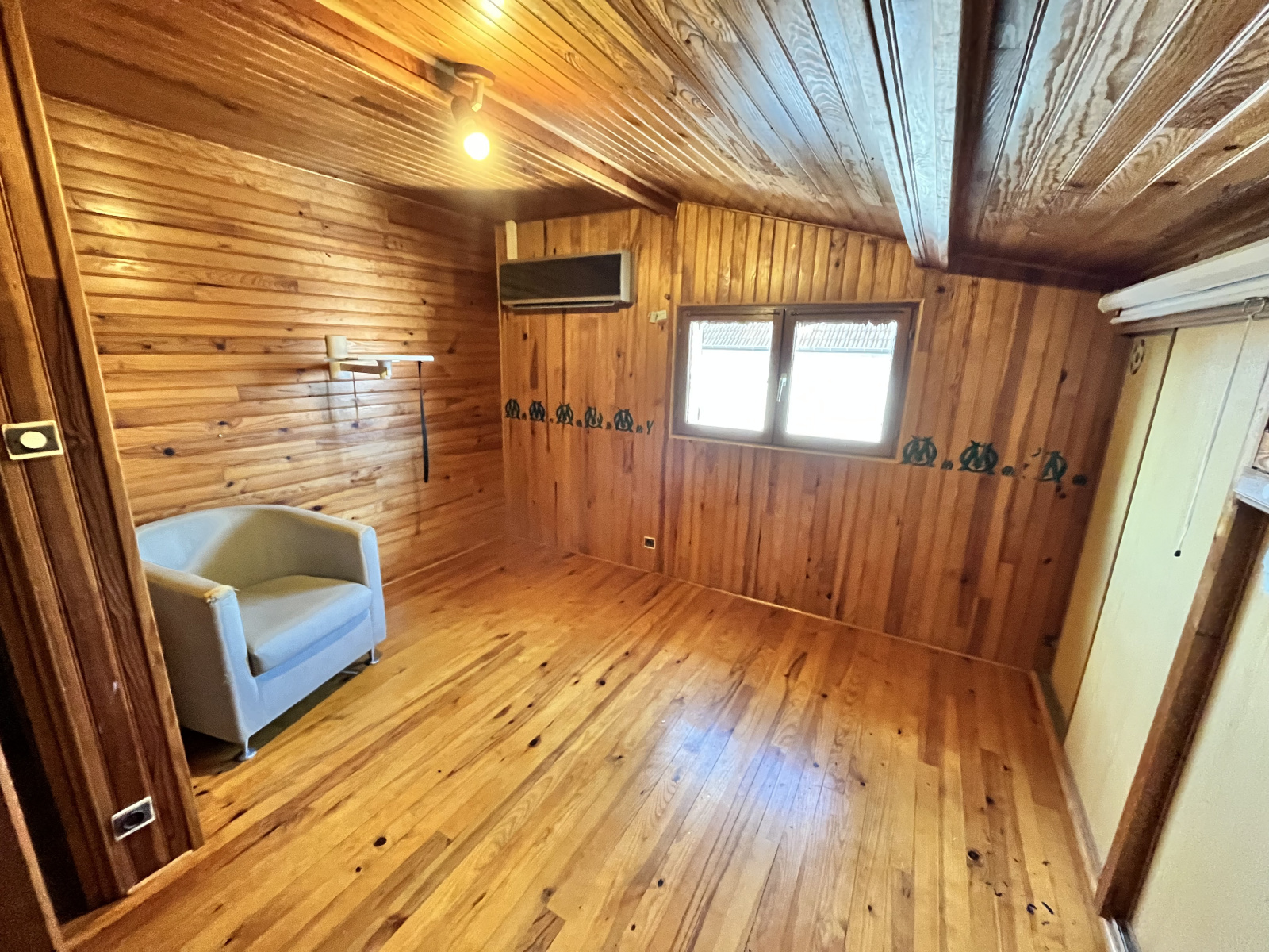 Menuiseries : double vitrage PVC + bois, volets bois + aluminium (manuels).
