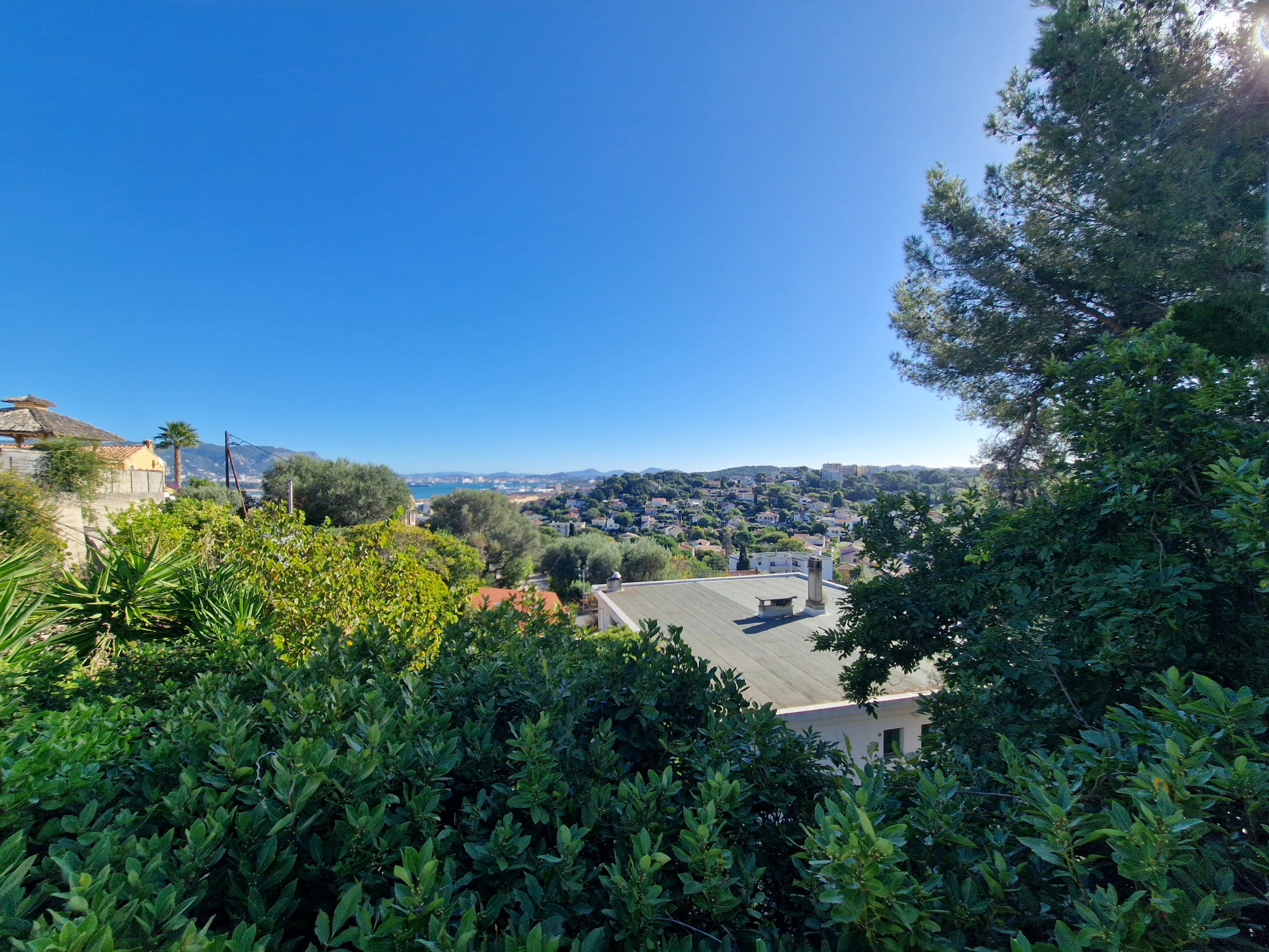 Aucun vis-à-vis, au calme et une vue sur la rade de Toulon. Il dispose d'une place de stationnement dans une copropriété de 4 lots. Résidence fermée avec portail automatique.