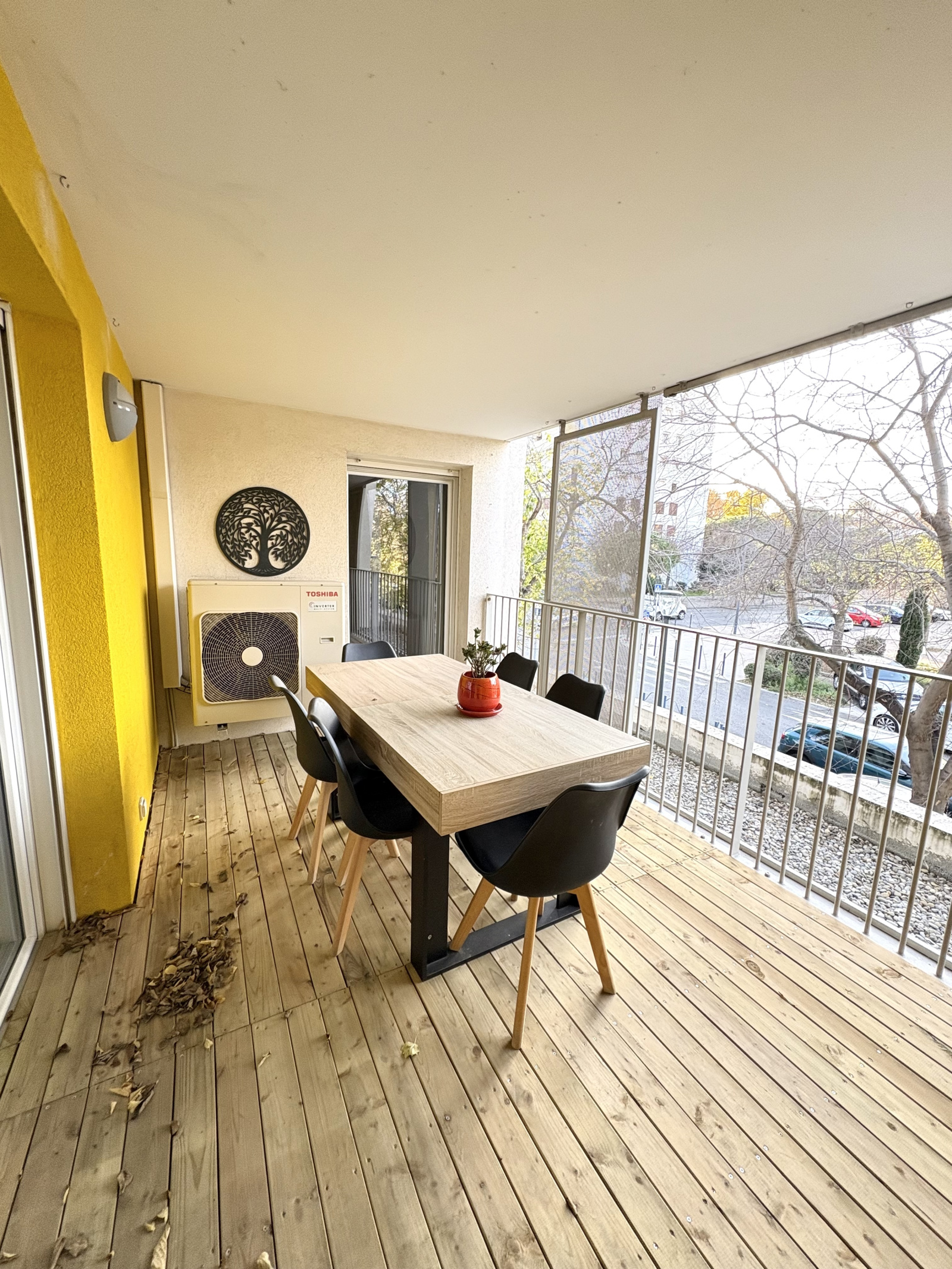 L'appartement se compose d'une grande entrée avec placard de rangement, une cuisine entièrement équipée ouverte sur le salon, de deux chambres accueillantes, une salle de bain, un WC séparé et une terrasse de (12,37m²). Aucun travaux à prévoir.