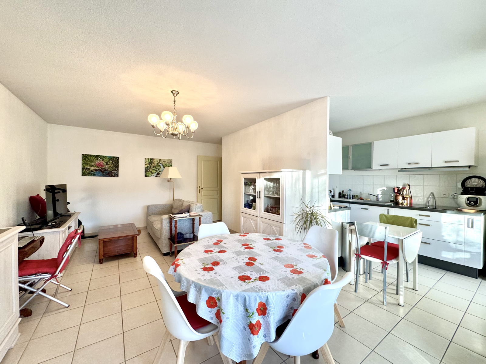 Il comprend une entrée donnant sur un séjour lumineux ainsi qu’une cuisine entièrement équipée avec ses meubles et électroménagers. L’appartement dispose également de deux chambres dont l’une est pourvue d’un placard aménagé, ainsi qu’une salle de bain et un WC séparé.