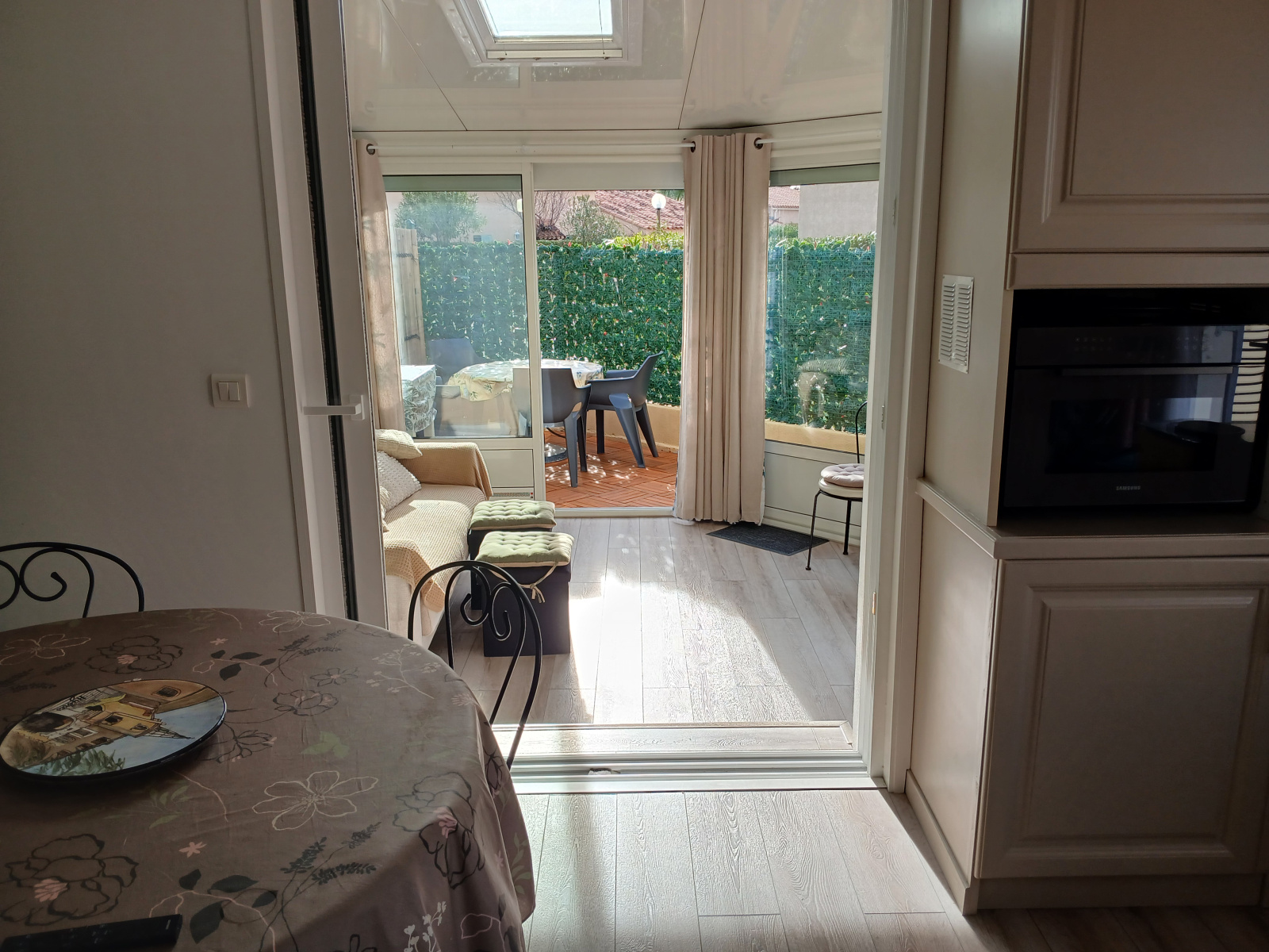 Au calme situé à 300 m de la plage, des commerces, des restaurants et du nouveau cinéma de la Baie des Iles, très beau mazet de 49.89 m² dont (34.23 m² en loi carrez) entièrement rénové et meublé en 2024/2025. Le rez de chaussée est composé d'une pièce de vie avec cuisine entièrement aménagée et équipée, une salle d'eau avec wc, une véranda dont vous pourrez profiter toute l'année (isolation, parquet, fenêtres en alu avec volets roulants électriques) ,ces deux piéces s'ouvrent sur deux terrasses ensoleillées sans vis à vis. A l'étage une chambre avec mezzanine, une chambre cabine avec fenetre et un placard , une salle d'eau avec wc. Les plus : de nombreux rangements, climatisation, vélux électrique avec son volet solaire, stores bannes récents, isolation, fibre, un premier cabanon pour le barbecue et un second pour le rangement. Possibilité d'acquérir une place de parking couverte. La copropriété est arborée, vous pourrez vous détendre et faire une partie de pétanque en famille ou entre amis .Venez visiter votre coup de coeur ....