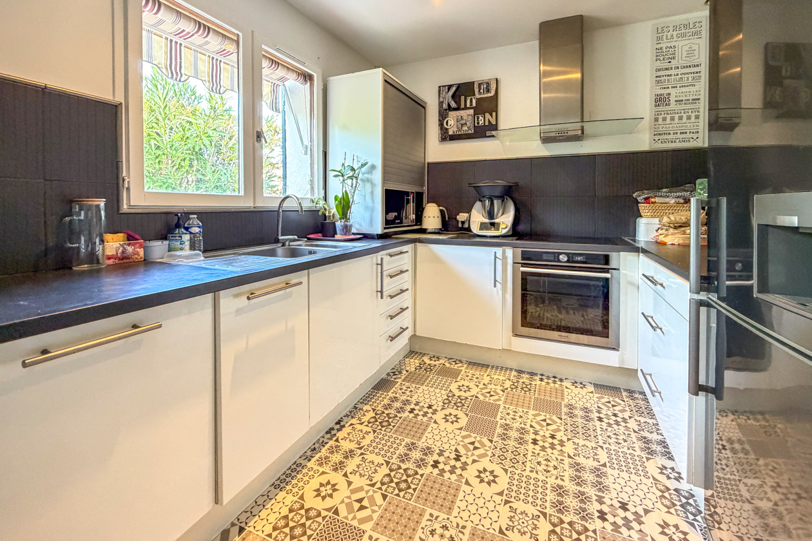 Jolie maison de plain-pied d'environ 120 m² à La Londe, composée d'un séjour salon avec cuisine aménagée équipée de 57 m², d'un premier coin nuit comprenant deux chambres dont la chambre parentale avec salle de bain et dressing ; un autre espace nuit propose deux chambres dont une d'environ 15 m² et une salle d'eau. Deux wc. Elégante, la maison est en parfait état et a été rénovée avec beaucoup de charme et confort : double vitrage, nombreux rangements, climatisation, cheminée avec insert. Nous notons que la façade a été refaite récemment, gouttières en aluminium gris foncé récentes. Vous profiterez du jardin et prendre vos repas côté terrasse. Possibilité piscine. Garage.