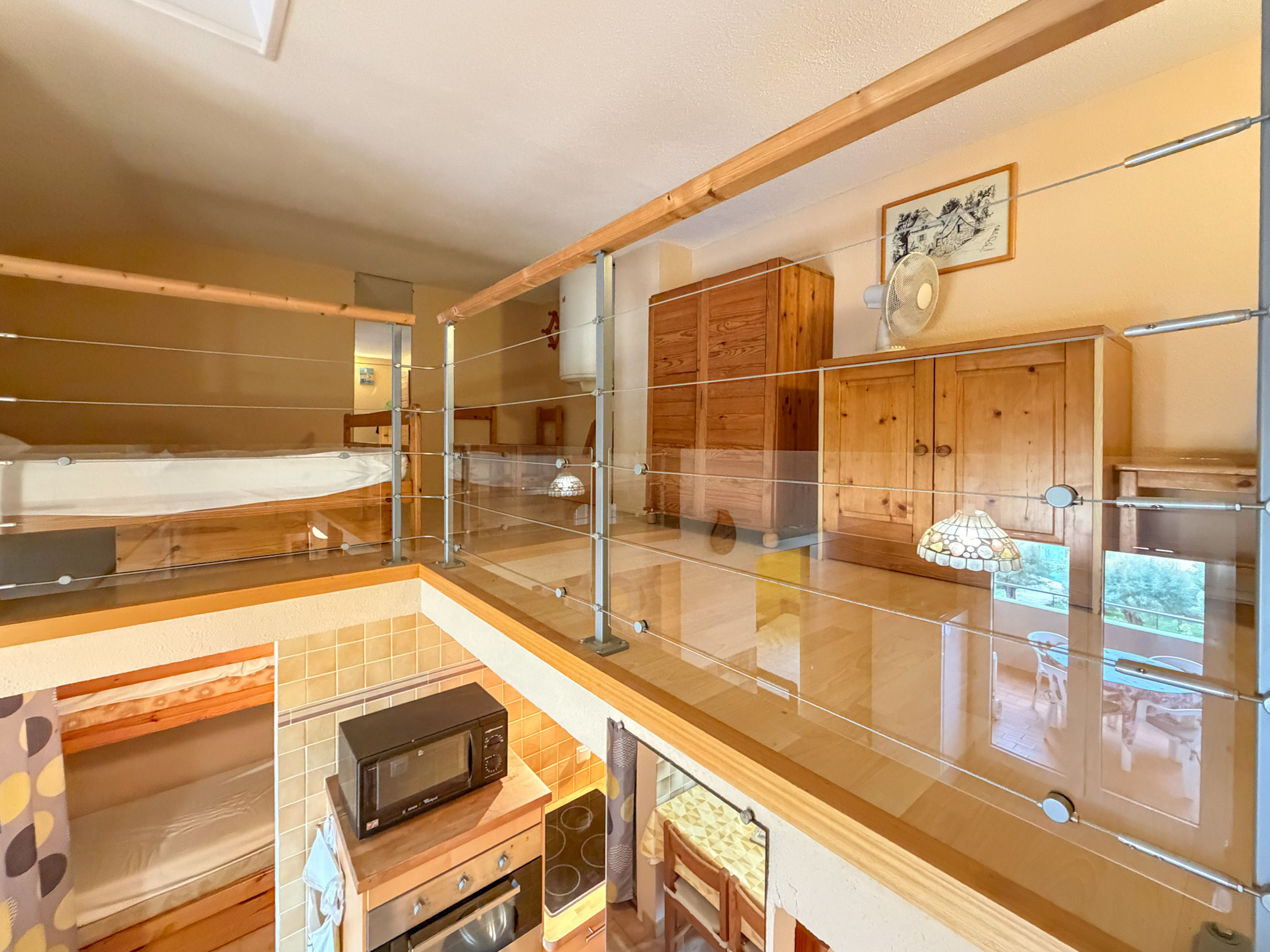 SOUS OFFRE D'ACHAT. Sur la plage de miramar à la Londe, bel appartement T2 cabine de 44 m² en dernier étage avec ascenceur comprenant : une pièce à vivre ouvrant sur grande terrasse vue sur mer, un coin kitchenette équipée, une chambre, une salle d'eau wc. A l'étage une grande mezzanine de 16m² avec velux. Sa situation au calme, sa vue mer de la terrasse et son exposition en font un lieu paisible et agréable. Une place de parking privative est également incluse dans le prix.